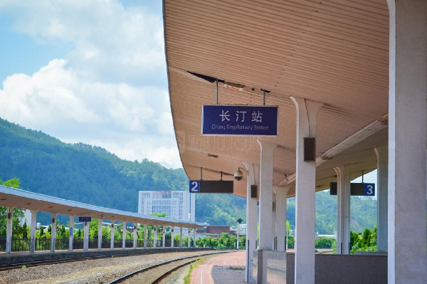 长汀站。图片来源:中国铁路南昌局集团有限公司 穿越闽赣大山,横跨汀江赣水,赣瑞龙铁路271公里,串起了“红色故都”瑞金,“长征精神发源地”于都,“红色小上海”长汀,“革命圣地”古田等众多中国共产党留下的光辉足迹。 线路经过的长汀县,是曾经中央苏区的经济文化中心。红军第一次在这里发放军饷,红军的第一套军装从这里开始缝制,中央苏区第一批国营企业在这里出现,这里还曾建设了中央红军第一所红色医院。然而,多年来由于闽西崇山峻岭、交通不便,极大局限了闽西地区的经济发展。1978年,闽西铁路客运里程仅为53公里,占比不足全省铁路里程的5%。2015年底,赣瑞龙铁路的贯通,这片红色土地又重新绽放出了灿烂光芒。
