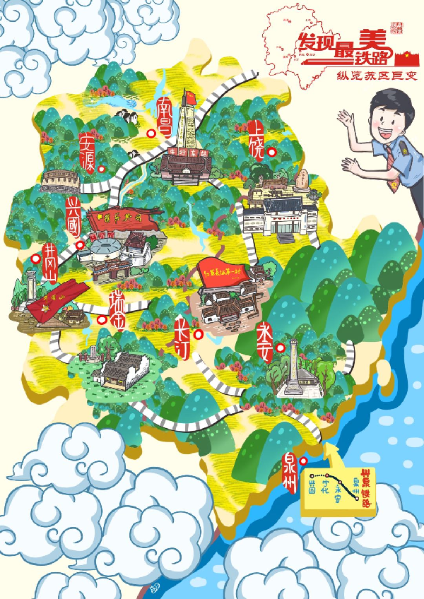 赣闽铁路红色环线示意图。图片来源:中国铁路南昌局集团有限公司 4月23日至26日,参加该活动的媒体采访团一行40余人,从英雄城南昌出发,沿着京九、赣瑞龙、南龙铁路及昌赣、合福、沪昆高铁组成的环线铁路,重温革命往事,探寻红色故事,纵览发展变迁,感悟初心传承。南昌、兴国、瑞金、长汀、清流、永安、上饶……由赣入闽,出闽入赣,4天时间虽然短暂,但媒体采访团记者进车站、听党史、访企业、入工地……通过实地探寻、走访,见证铁路在赣闽大地不断延伸,沿途革命老区的经济在快速发展。 上饶火车站:五次嬗变铸就亮丽名片 据介绍,上饶火车站是全国首座垂直骑跨式高铁枢纽站。沪昆高铁、合福高铁和沪昆铁路在此呈十字交汇,形成了三场两所格局,旅客可在站内方便快捷地实现无缝换乘。目前,该站日均停靠列车300多趟,是江西省内停靠列车最多的火车站。平均每日到发旅客5万余人次。 上饶站党总支书记陈卫红告诉记者,火车站始建于1935年,经过1953年、1998年两次原址重建,2006年搬迁到现址,2014年新站房落成运营,历经了“五生五世”。赣东北的上饶因地理位置优越,交通便利,自古就有“八方通衢”“豫章第一门户”之称,铁路的发展,车站的升级就像为饶城发展插上了隐形的翅膀。