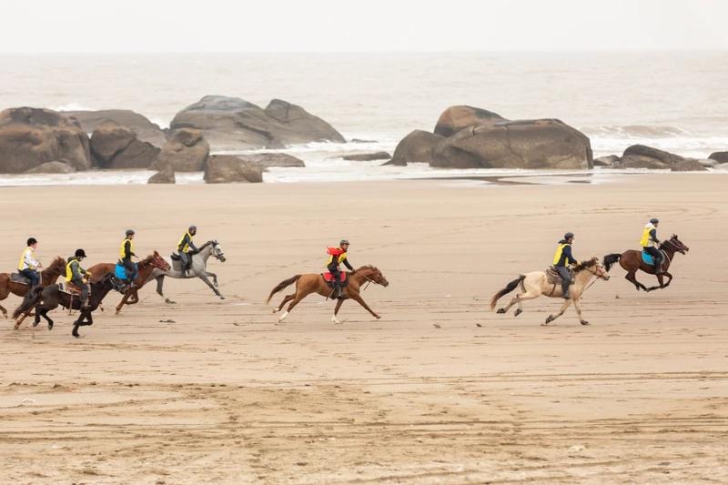 1号滨海风景道——福建·长乐“海骑英雄会”活动现场(主办方供图) 本次活动以海骑为主题,以海边骑马、骑游为重点内容,创造主客共享的旅居生活,以此打造“滨海网红打卡地”和“爆款风景道”,通过创建1号滨海风景道“文化+体育+旅游”时尚新名片,助力推动福建滨海旅游高质量发展,提升和扩大“清新福建”“福文化”品牌魅力,激发福建旅游市场新活力。 福建省文化和旅游厅一级巡视员吴立官在致辞中说道,在过去几年里,福建文化和旅游部门始终用坚定信念和意志,在疫情造成的不确定环境中,为广大游客寻找、创造新的旅游方式。除了翻越雪山草原,在滨海骑马更有一番风味。福建海岸线长3752公里,从北到南风景多样,许多沙滩都是骑马的好地方,也是投资海骑这个旅游新业态的上好选择。 活动现场,骑师们策马扬鞭、车队驰骋海滩、帆船队扬帆共同起航揭开活动序幕。海骑竞速表演赛火热上演,来自海骑、机车、马术等俱乐部及户外运动爱好者齐聚一堂,在赛马竞速赛、绕桩表演赛、趣味海骑竞速赛中轮番较量,赛马、机车、越野车并驾齐驱的精彩画面,呈现了一幕幕速度与激情的瞬间。