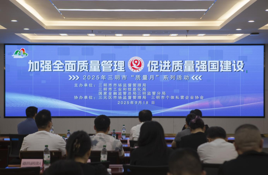 9月,三明市市场监管局联合市工业和信息化局、国家金融监管总局三明监管分局,以“突出质量标杆引领 拓展质量赋能领域”为主线,组织全市各有关部门、优秀企业、金融机构及认证机构80余位代表,拉开了2025年三明市“质量月”活动的帷幕,为质量强市建设蓄势聚能。