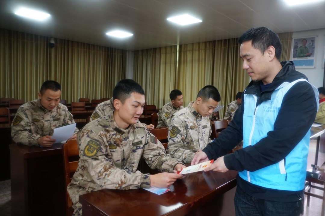 为让军人军属维权“零门槛、零等待”,长汀县司法局不断优化法律服务举措。在县公共法律服务中心窗口设立“军人军属优先”标识,将法律援助申请、公证办理等事项纳入退役军人服务清单。建立涉军法律服务快速响应机制,对退役军人及家属的咨询、申请及时响应,做到“材料齐全马上办、材料不全指导办、特殊情况协助办”,从源头上打通服务“最后一公里”。推行“全城通办”“异地协作”服务,针对偏远地区军人军属,开展“预约服务”“上门服务”,通过远程视频、线上提交材料等方式,解决维权路途远、时间紧的难题。近两年来,共办理涉军人军属法律援助案件31件、公证事项28件,解答相关法律问题84个,为军人军属挽回经济损失160余万元,有效保障了军人军属的合法权益。 普法筑基 厚植拥军氛围 “讲的都是我们关心的内容,太实用了!”在武警龙岩支队长汀中队,党员律师和“蒲公英”普法志愿者正忙着为官兵发放宣传资料、解答法律疑问。